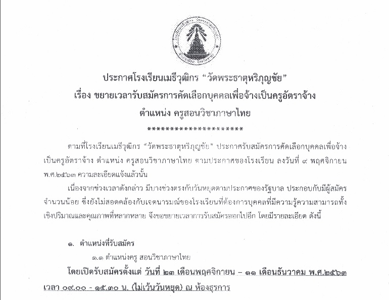 (ขยาย) ประกาศรับสมัครครูภาษาไทย